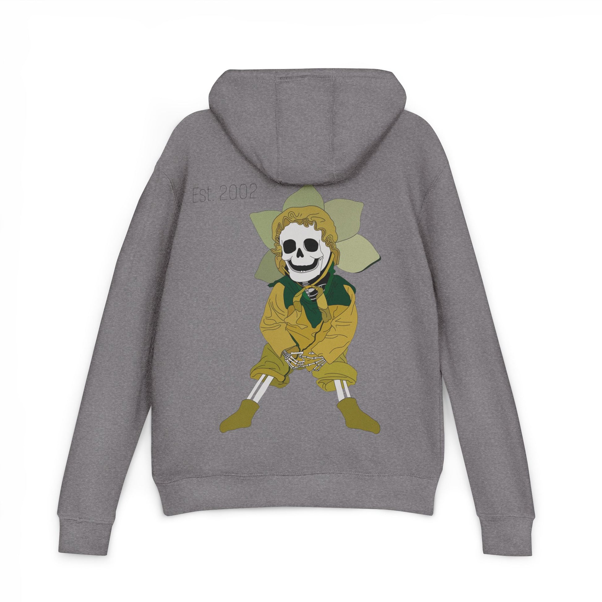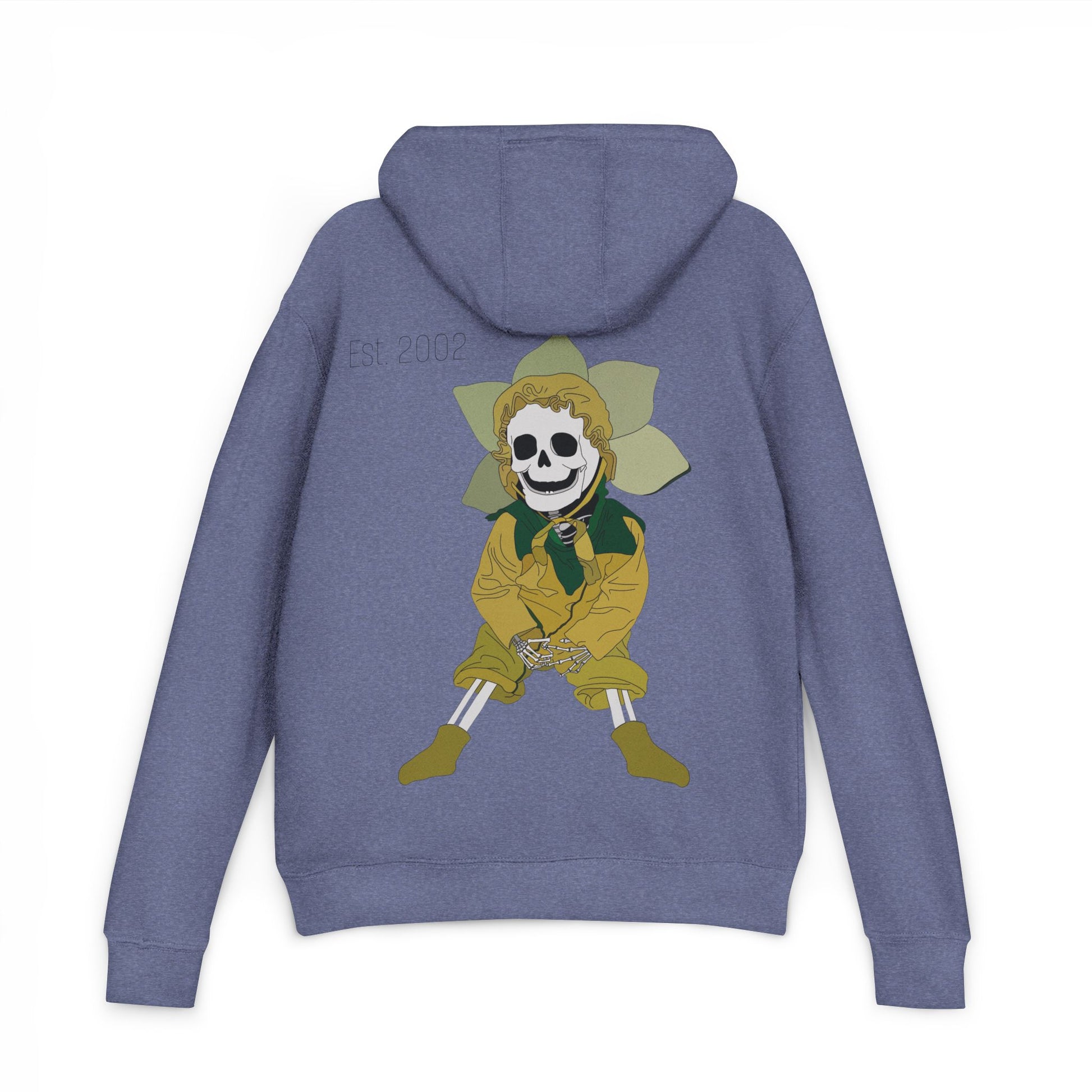 Step into the spirit of Halloween with a little light and a little fright. The front proudly circles the name "Sunflower Soul Child," while the back features my original design - a skeleton child dressed in a sunflower costume, playful and haunting all at once.